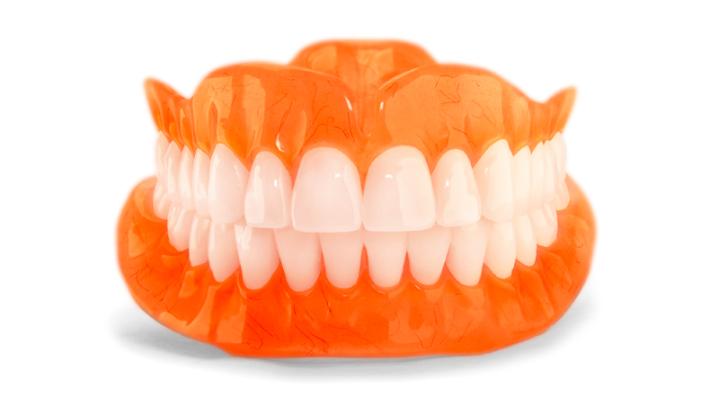 Nas próteses dentárias totais, a base acrílica com cor da gengiva é encaixada sobre a gengiva e o pálato. A base da prótese dentária superior cobre o palato (céu da boca), enquanto a prótese inferior tem forma de ferradura para acomodar a língua. As próteses dentárias são feitas individualmente por um dentista a partir de moldagens tiradas da boca do paciente. Seu dentista determinará qual dos três tipos de prótese dentária descritas abaixo é o melhor para si.